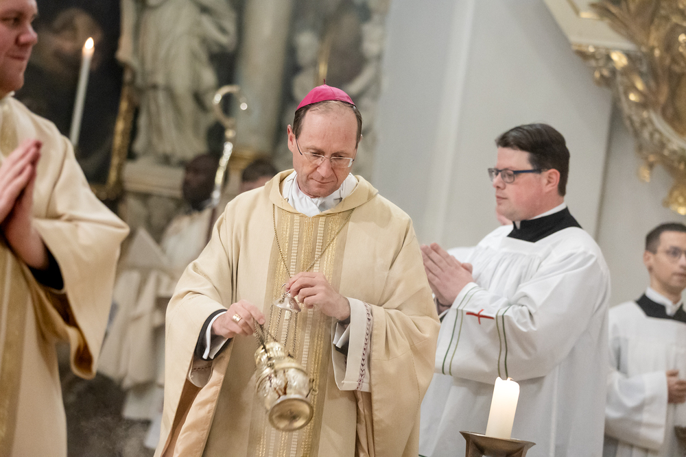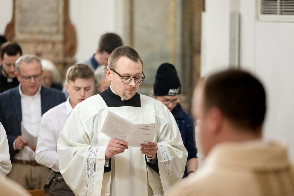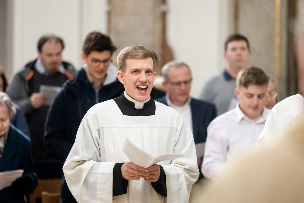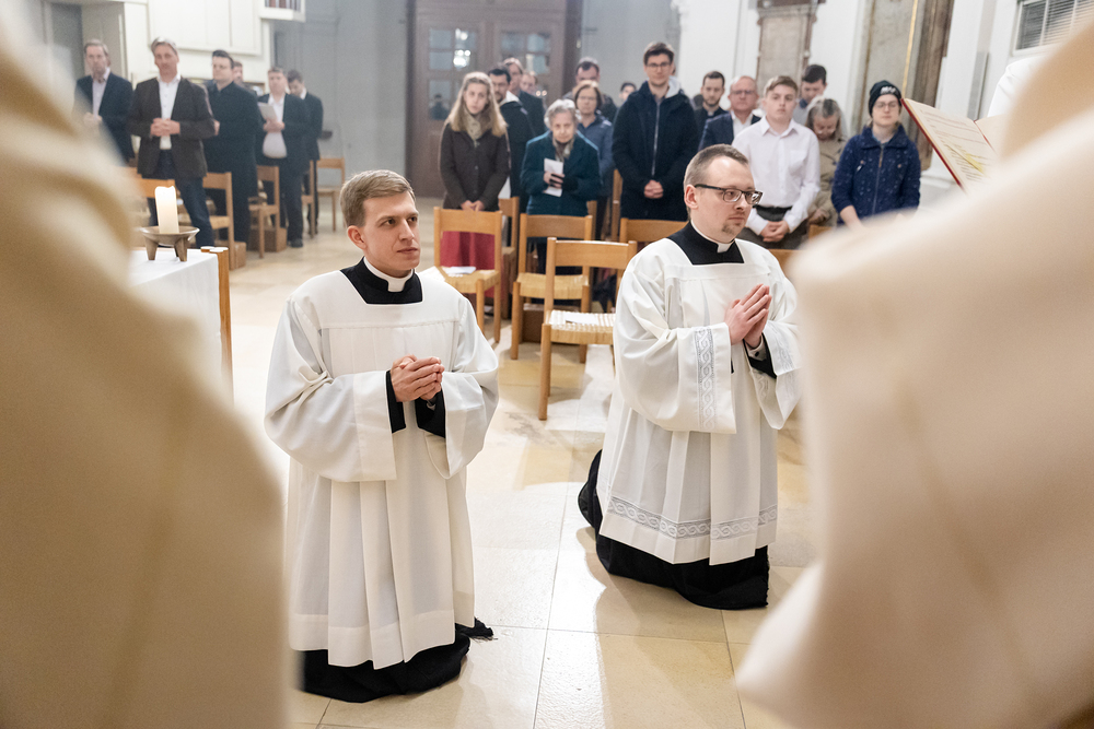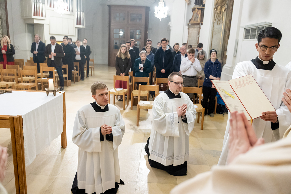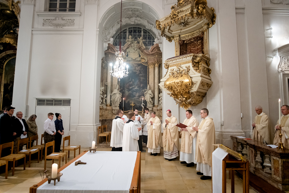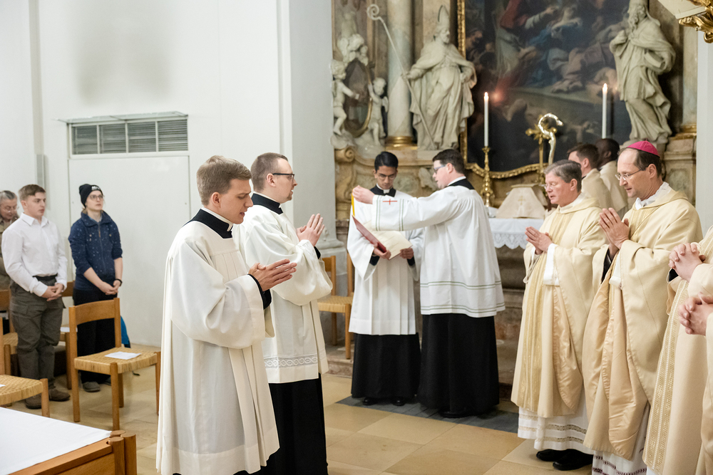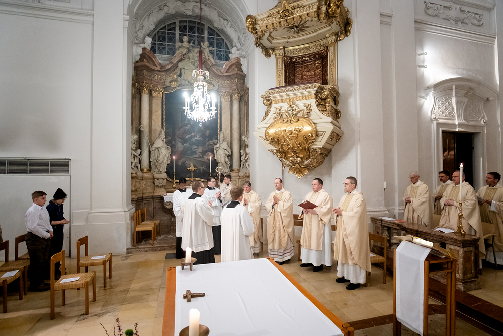 Die Admissio ist ein bedeutender Schritt auf dem Weg zur Weihe. In einer feierlichen Liturgie wird der Kandidat offiziell in die letzte Phase der Vorbereitung auf das Weihesakrament aufgenommen. Mit diesem Akt bekennt der Kandidat öffentlich seine Bereitschaft, den Dienst in der Kirche anzunehmen und seinen Weg der Berufung weiterzugehen. Diese Feier drückt die Anerkennung der Kirche aus und stärkt die Verbindung zwischen dem Kandidaten und der Gemeinschaft. Durch Gebet, Segen und Zuspruch wird der Kandidat auf seinem weiteren geistlichen Weg begleitet und ermutigt. Unter die Weihekandidaten aufgenommen wurden die Seminaristen Florian Gründker und Constantin Mucha. Wir waren mit der Kamera dabei.