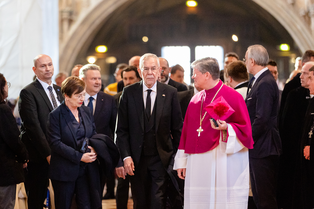 Mit einem "Requiem für seine Heiligkeit Papst Franziskus" nahm Österreich am Montagabend offiziell Abschied vom Papst. Dem Gottesdienst stand der Vorsitzende der Österreichischen Bischofskonferenz, Erzbischof Franz Lackner vor. Mit ihm konzelebrierten die heimischen Bischöfe. Die Politik war an erster Stelle von Bundespräsident Alexander Van der Bellen und Bundeskanzler Christian Stocker vertreten. Zahlreiche Gläubige gaben dem Papst im vollen Dom ebenfalls die letzte Ehre